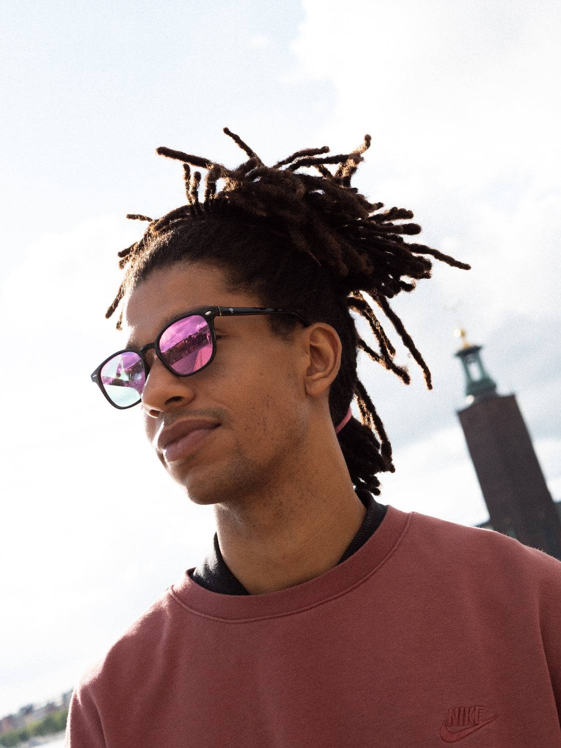 Black frame made from 100% recycled plastic, combined with a pink mirror lens.