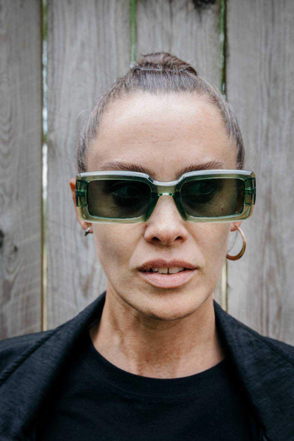 Tove. A hippie in disguise! A forest green frame made of recycled plastic, combined with a green lens.