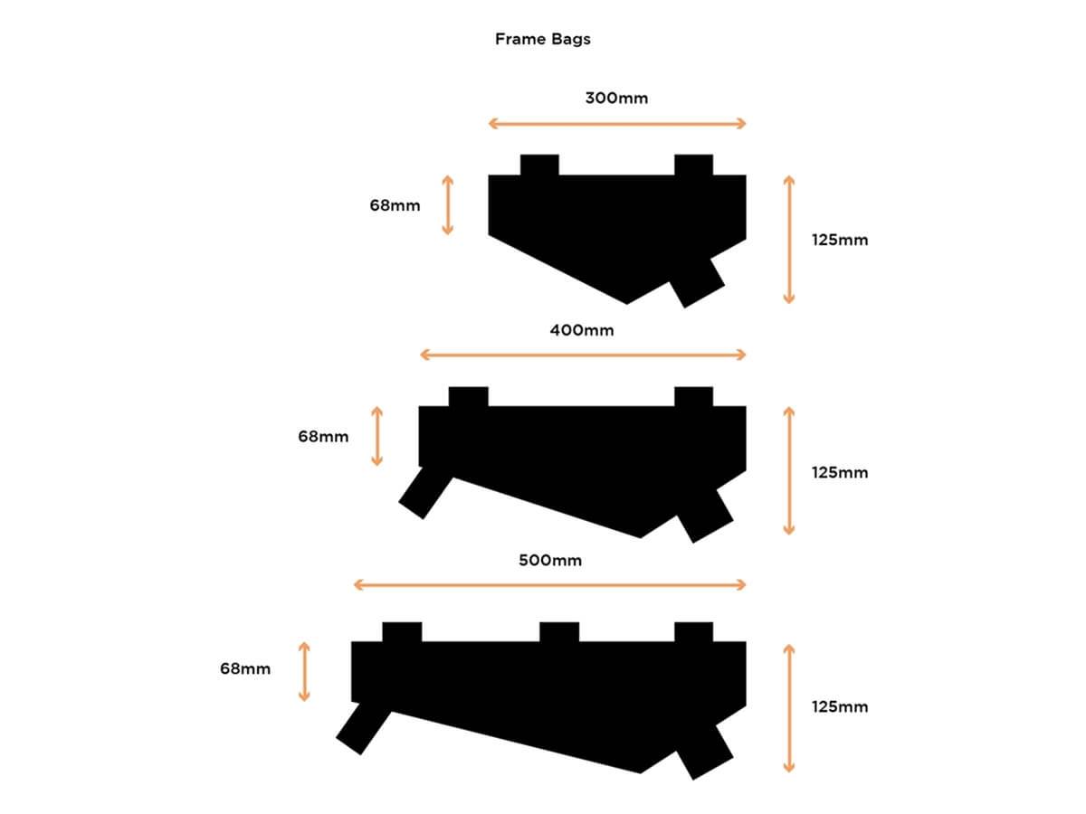 Attaches with adjustable rubber-covered Velcro straps on the top tube and tension straps on the down tube and seat tube. Waterproof zippers and durable cordura fabric. Holds 3.5l.