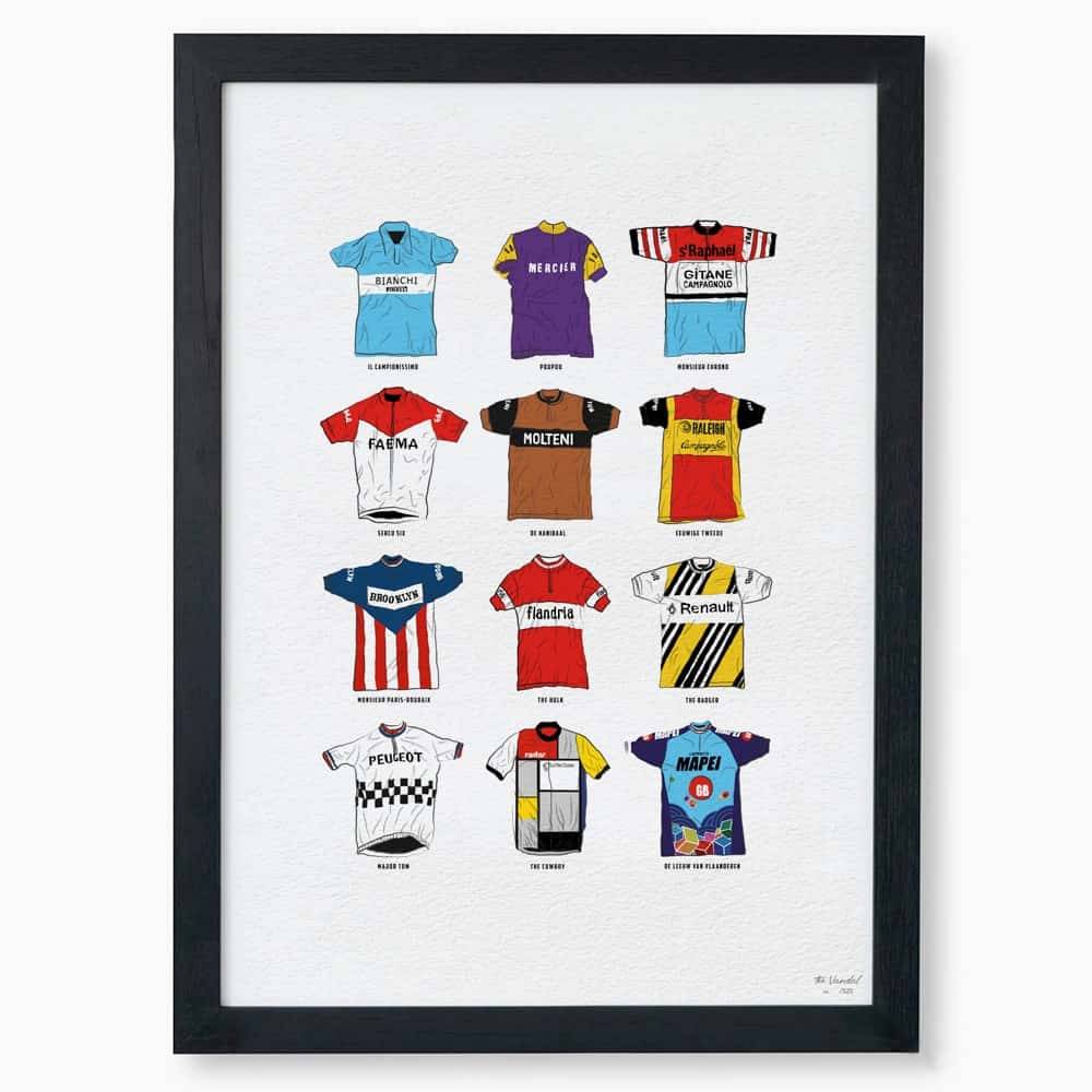 The most iconic cycling jerseys in cycling history on print. A3 or A4. Without frame.