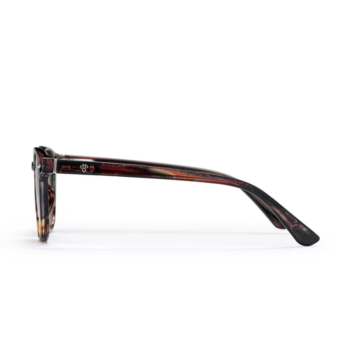 Sköldpaddsfärgad båge tillverkad av 100% återvunnen plast, kombinerat med en brun lins.