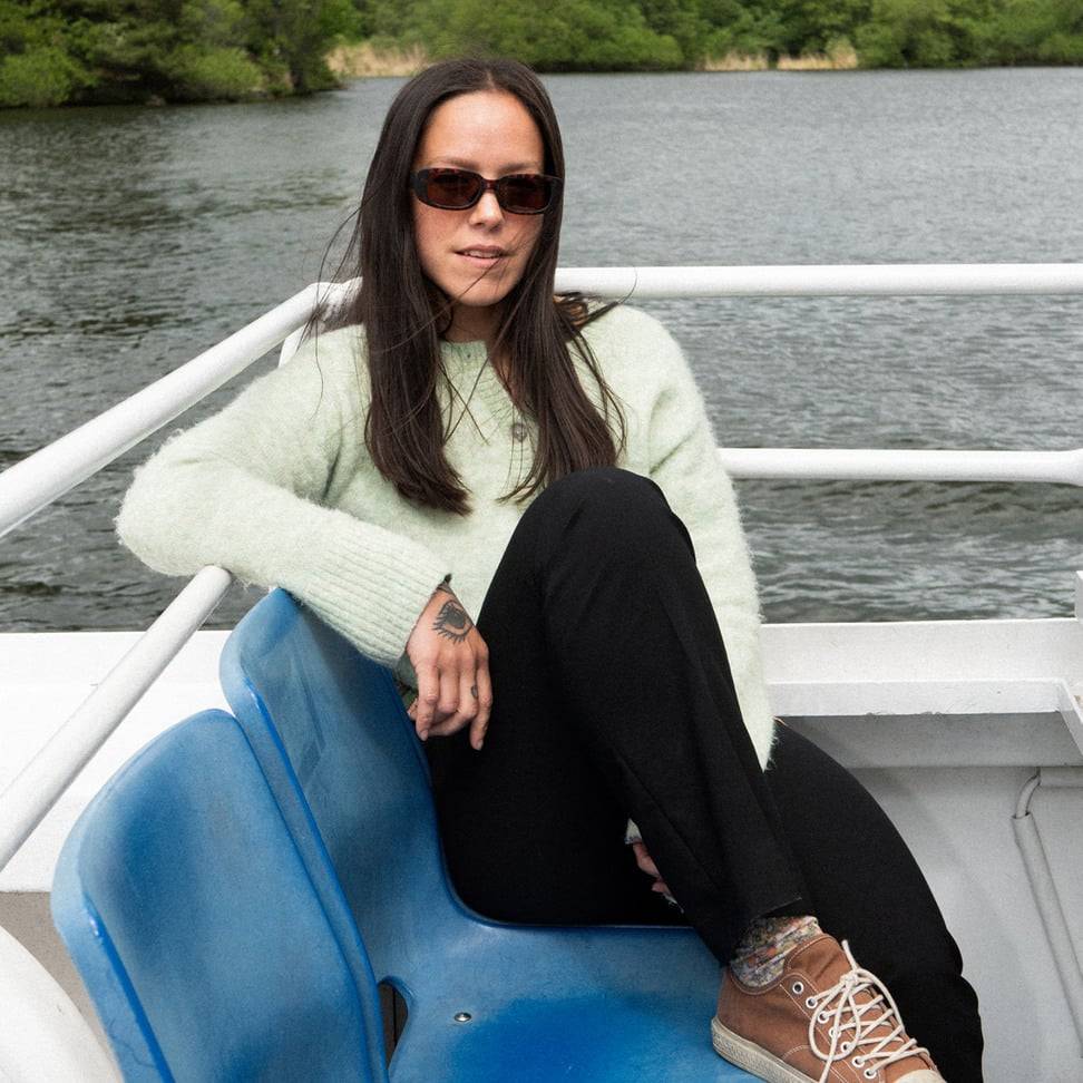 Sköldpaddsfärgad båge tillverkad av 100% återvunnen plast, kombinerat med en brun lins.